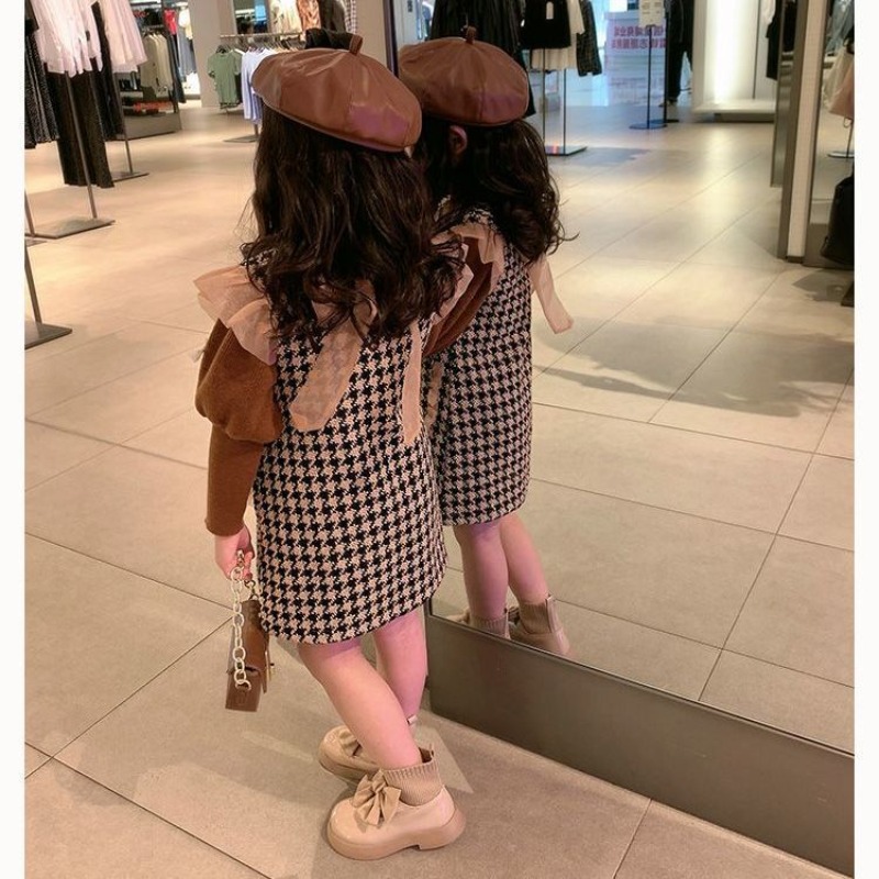 Girls' Autumn Winter New Fashion High Neck Pullover Long Sleeve Plaid Casual Ver
