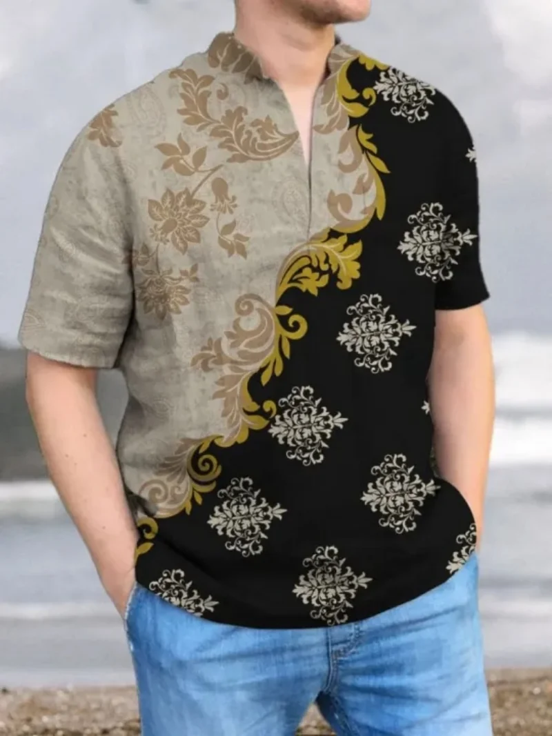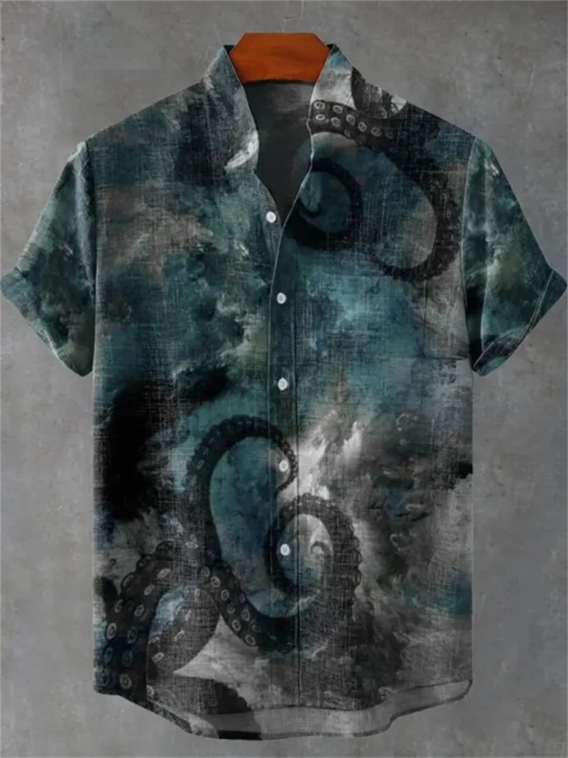 Men's Hawaiian shirt, men's 3D printed short sleeved shirt, beach vacation linen