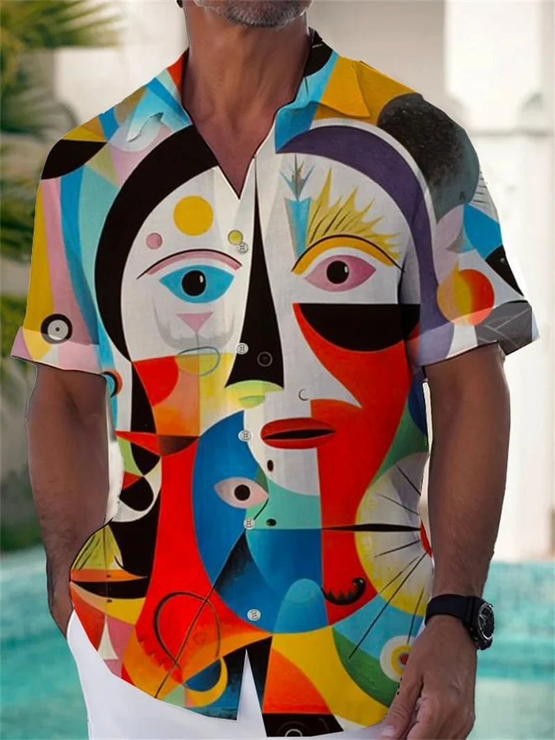 Men's shirt, marine animal printed clothing, beach vacation Hawaiian shirt, casu