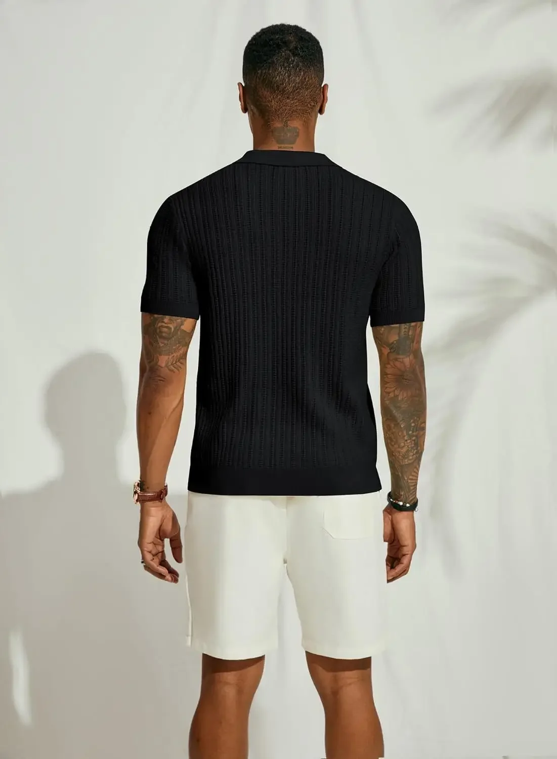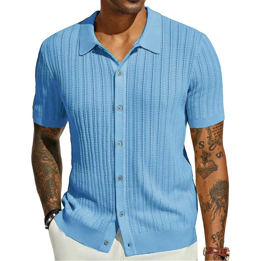 Mens Short Sleeve Knit Shirts Army Green Vintage Button Down Polo Shirt Men Casual Summer Beach Vacation Tops Chemise Homme 2025