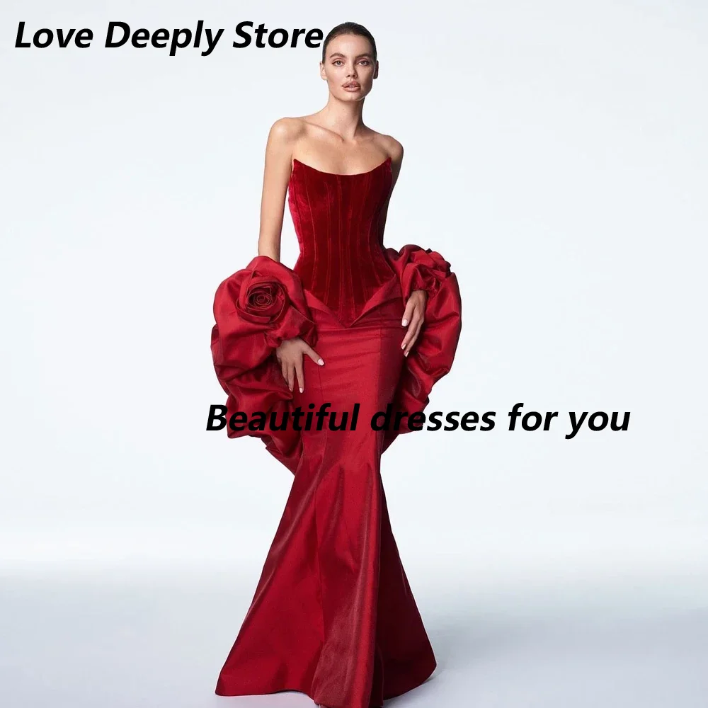 Red Evening Dresses for Women Sexy Strapless Floor Length Prom Dress 2025 Mermai