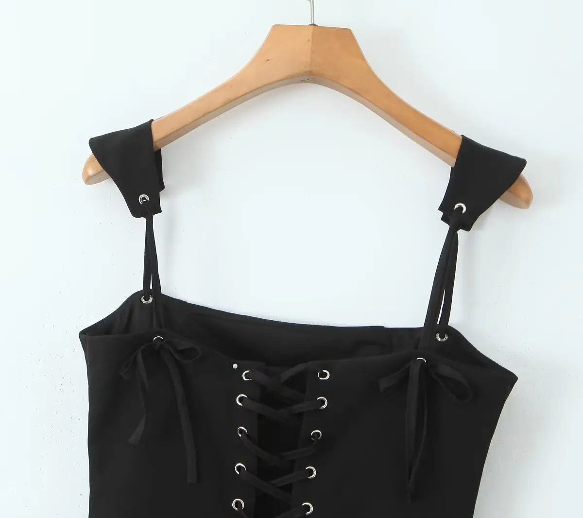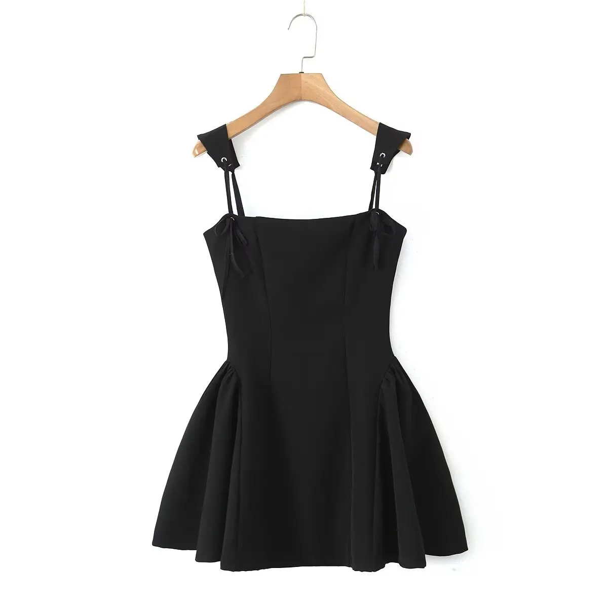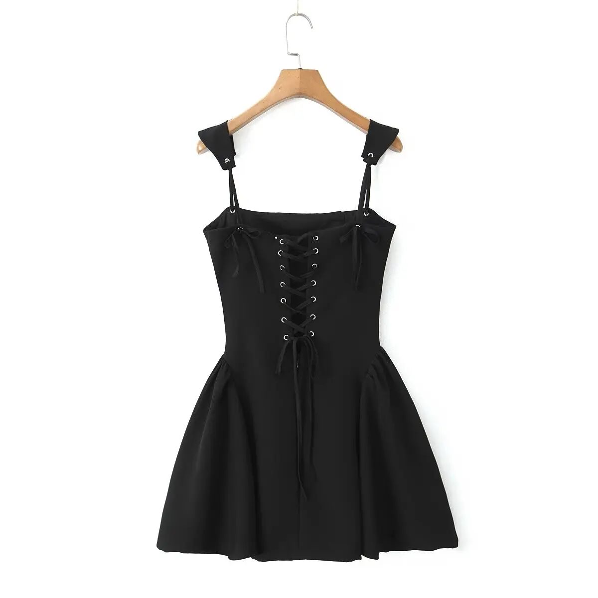 New Women Sexy Spaghetti Straps Black Mini Ball Gown Dress Low Waist Lacing Up