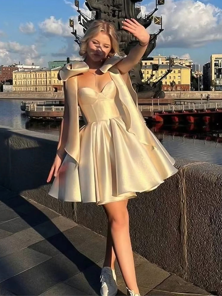 Modern Short Evening Dresses Women Bow Straps Off The Shoulder Prom Dresses Swee